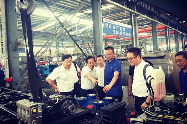 最后,在執行總經理朱武、副總經理倪文進、商用車副總經理高朝輝等人的陪同下,馮剛副總裁一行興致勃勃地參觀了程力老廠、新廠,并與程力重汽、程力智能環衛、程力高端抑塵車廠負責人進行了具體交流。